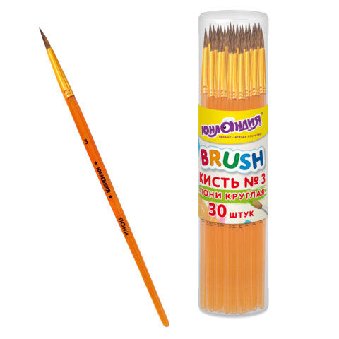 Кисть ПОНИ, круглая, № 3, цветная ручка, ЮНЛАНДИЯ, 201062