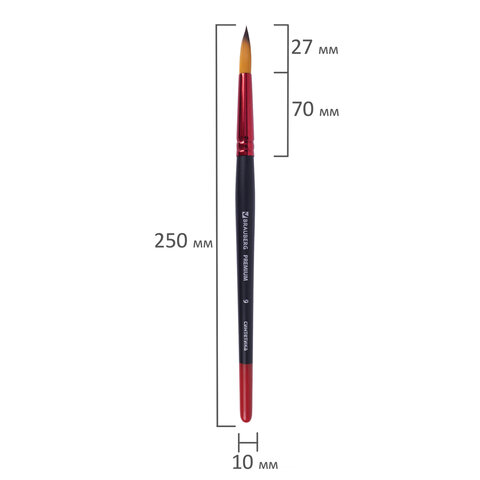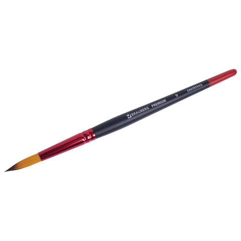 Кисть синтетика, круглая № 9, BRAUBERG PREMIUM, 201008