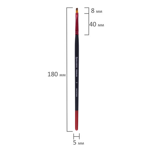 Кисть синтетика, плоская № 3, BRAUBERG PREMIUM, 201012