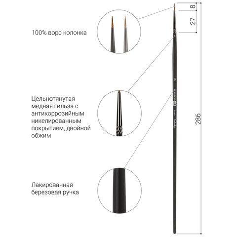 Кисть художественная проф. BRAUBERG ART CLASSIC, колонок, круглая, № 0, длинная ручка, 200921