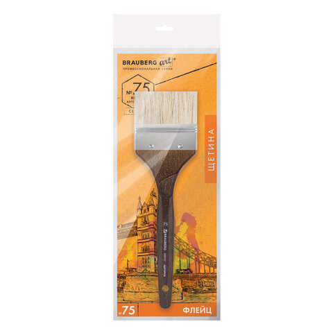 Кисть художественная профессиональная BRAUBERG ART CLASSIC, щетина, флейц, № 75, короткая ручка, 200747