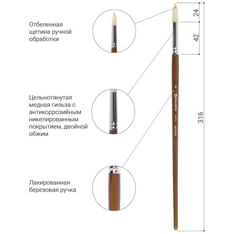 Художественная профессиональная кисть BRAUBERG ART "CLASSIC" № 8 предназначена для работ густыми красками: гуашь, акрил, масло, темпера.
