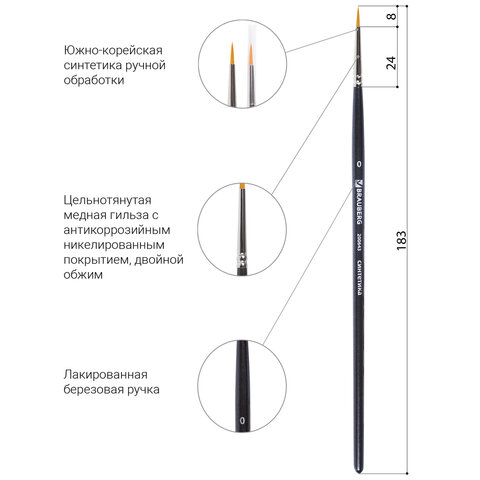Художественная профессиональная синтетическая кисть BRAUBERG ART "CLASSIC" № 0 предназначена для работ густыми красками: гуашь, акрил, масло, темпера. Идеальна для водорастворимых масляных красок.