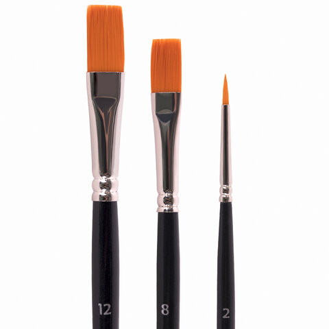 Кисти художественные BRAUBERG ART CLASSIC, набор 3 штуки, синтетика (круглая № 2, плоские № 8, 12), 200944