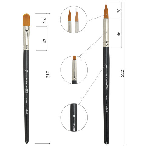 Номер кисти круглая № 0, 1, 3, 5, 8; плоская № 6, 10, 12; скошенная № 14; овальная № 6, 12; веерная № 8