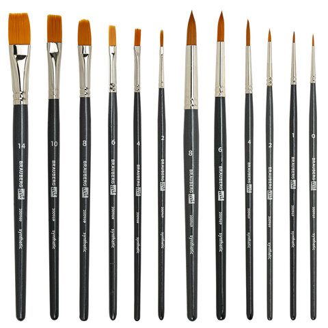 Кисти художественные набор 12 шт., в черной скрутке, синтетика, BRAUBERG ART CLASSIC, № 0-14, 200969