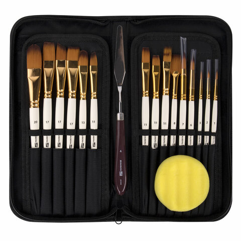 Кисти художественные набор 15 шт. + мастихин в пенале, белые, синтетика, BRAUBERG ART DEBUT, 201044