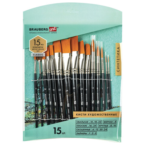 Кисти художественные набор 15 шт., синтетика, BRAUBERG ART CLASSIC, 200962
