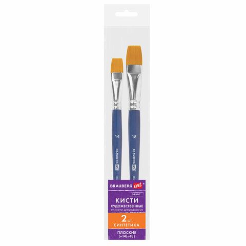 Кисти художественные набор 2 шт, синтетика (плоские №14, 18), BRAUBERG ART DEBUT, 201038