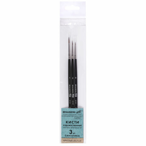 Кисти художественные набор 3 шт., синтетика (круглые № 0, 1, 2) BRAUBERG ART CLASSIC, 201031