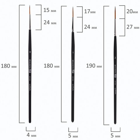 Кисти художественные набор 3 шт., синтетика (лайнеры № 0, 1, 2) BRAUBERG ART CLASSIC, 201034