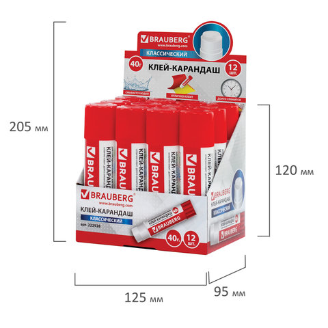 Клей-карандаш BRAUBERG, 40 г, 222928