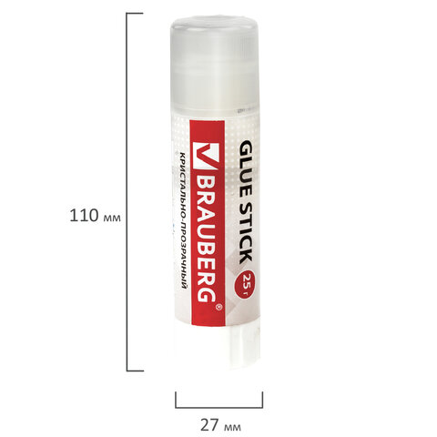 Клей-карандаш BRAUBERG "Crystal", 25 г, прозрачный, 227968, PVP