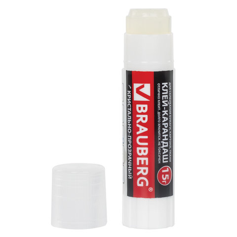 Клей-карандаш BRAUBERG "Crystal", 15 г, прозрачный, 224337