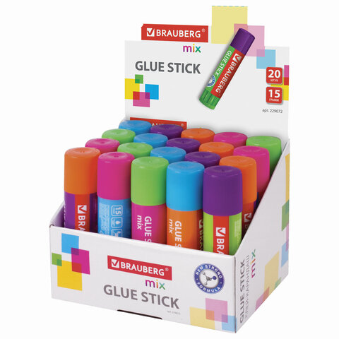 Клей-карандаш BRAUBERG MIX, 15 г, PVP основа, 229072