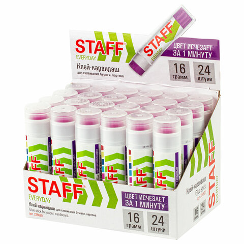Клей-карандаш STAFF EVERYDAY, 16 г, обесцвечивающийся после высыхания, 226620