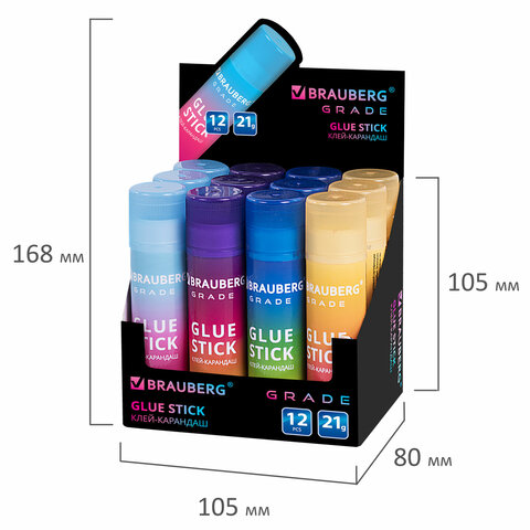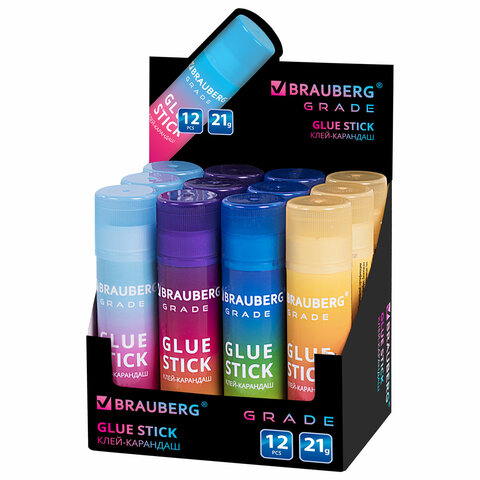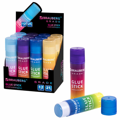 Клей-карандаш в градиентном корпусе BRAUBERG "Grade", 21 г, PVP-основа, ассорти, 271247