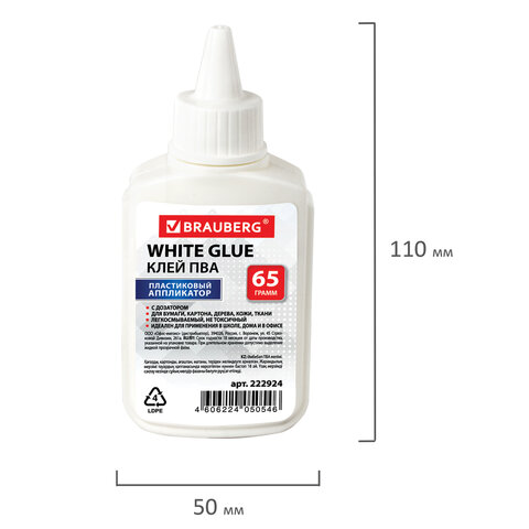 Клей ПВА BRAUBERG (бумага, картон, дерево), 65 г, 222924