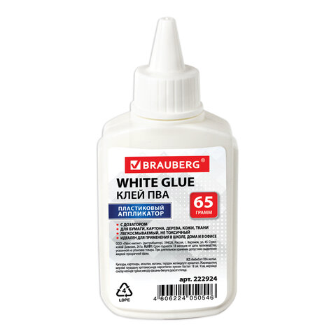 Клей ПВА BRAUBERG предназначен для склеивания бумаги, картона, фотографий, дерева и кожи.