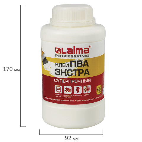 Клей ПВА Экстра Суперпрочный 1 кг (керамика, ткань, кожа, дерево, бумага, картон), LAIMA, 606432