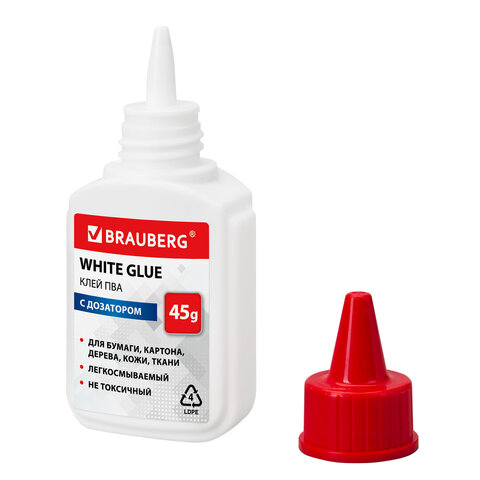 Клей ПВА BRAUBERG предназначен для склеивания бумаги, картона, фотографий, дерева и кожи.