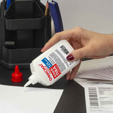Клей ПВА ОФИСМАГ предназначен для склеивания бумаги, картона, фотографий, дерева.