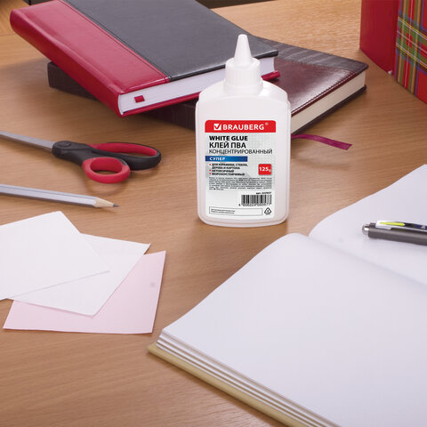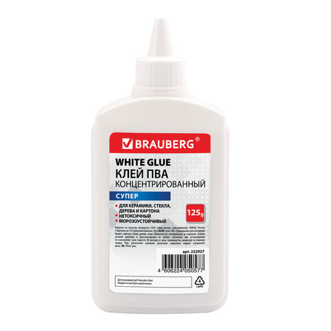 Клей ПВА СУПЕР BRAUBERG предназначен для склеивания изделий из керамики, ткани, кожи, дерева, бумаги, картона, фотографий.