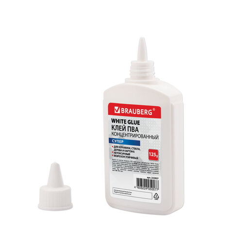 Клей ПВА-СУПЕР BRAUBERG (керамика, ткань, кожа, дерево, бумага, картон), 125 г, 222927