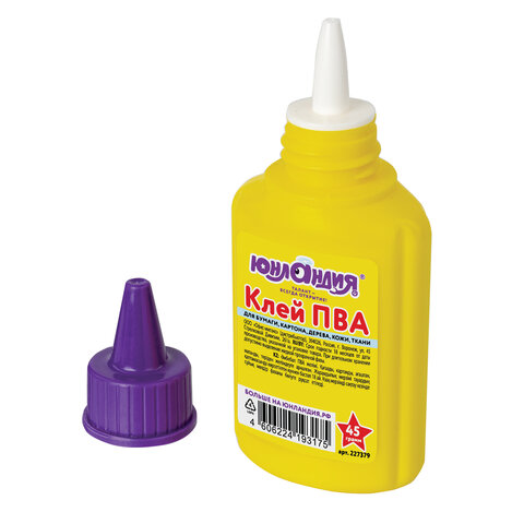 Клей ПВА ЮНЛАНДИЯ (бумага, картон, дерево), 45 г, 227379