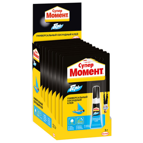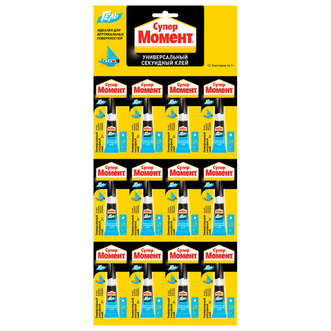 Клей-гель моментальный Супер МОМЕНТ, 3 г, отрывная мультикарта, 622917