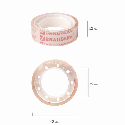 Клейкие ленты 12 мм х 10 м канцелярские BRAUBERG, комплект 12 шт., прозрачные, гарантированная длина, 223122