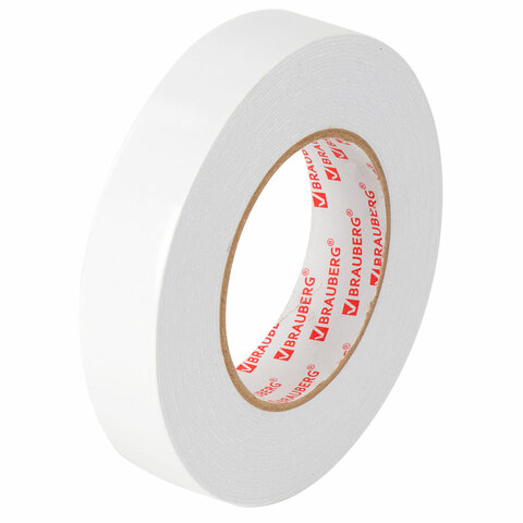 Клейкая двухсторонняя лента 25 мм х 8 м, НА ВСПЕНЕННОЙ ОСНОВЕ, 1 мм, прочная, BRAUBERG, 600487