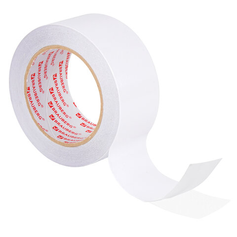 Двухсторонняя клейкая лента BRAUBERG на основе полипропилена применяется во время мотажных работ внутри помещений, при строительных, монтажных и автомобильных работах.