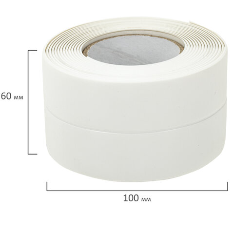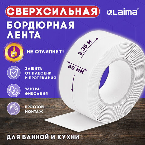 Клейкая лента бордюрная для ванны и кухни 60 мм х 3,35 м, белая, акриловая основа, LAIMA, 608773