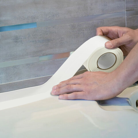 Бордюрная лента LAIMA используется в бытовых условиях для герметизации стыков и швов между раковиной, ванной, столешницами и прилегающими к ним стенами.