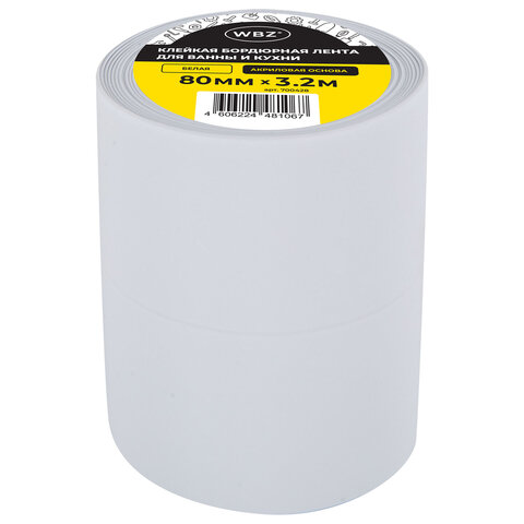 Клейкая лента бордюрная для ванны и кухни 80 мм х 3,2 м, белая, акриловая основа, WBZ (ВБЗ), 700428