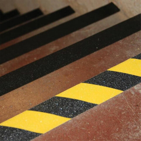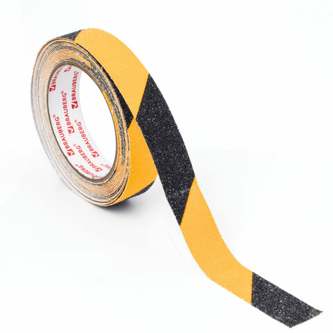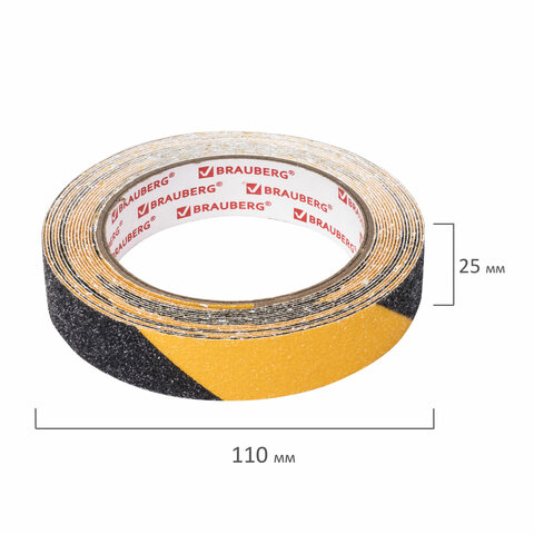 Клейкая ПРОТИВОСКОЛЬЗЯЩАЯ зернистая лента 25 мм х 5 м, ЧЕРНО-ЖЕЛТАЯ, основа ПВХ, BRAUBERG, 606773