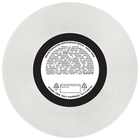 Многоразовая двухсторонняя прозрачная крепежная лента, скотч NANO tape, 3 м x 5 см, толщина 1 мм, WBZ (ВБЗ), 700427