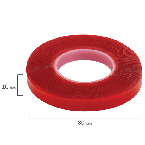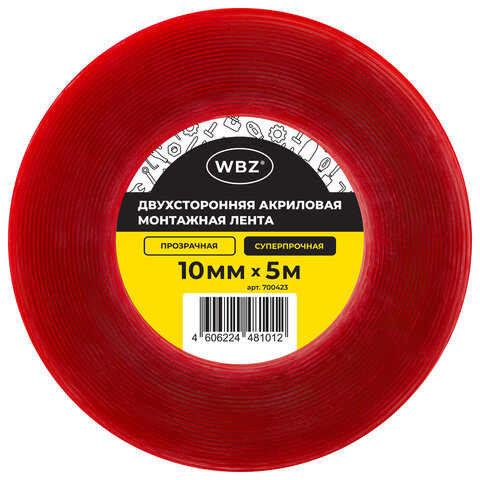 Монтажная прозрачная суперпрочная двухсторонняя лента 10 мм х 5 м, акриловая, толщина 1 мм, WBZ (ВБЗ), 700423