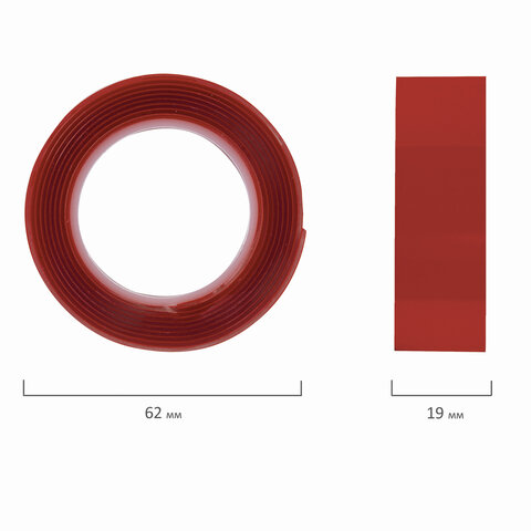 Монтажная прозрачная суперпрочная двухсторонняя лента 19 мм х 1,5 м, акриловая, 1 мм, BRAUBERG, 606423