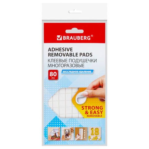 Клеевые подушечки многоразовые BRAUBERG, 80 шт., бесследное удаление, белые, 608780