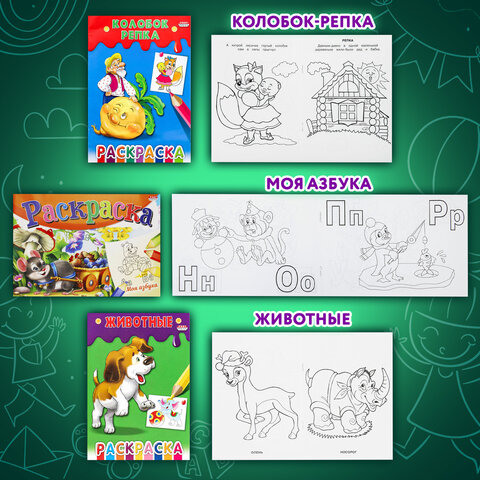 В наборе книжек-раскрасок формата А5 "ДЛЯ ДЕВОЧЕК И МАЛЬЧИКОВ" представлено много интересных и увлекательных сюжетов. Дайте малышу цветные карандаши, краски или фломастеры, и он с удовольствием и пользой проведёт время!