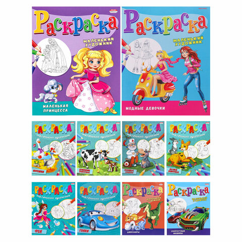 Книжка-раскраска "Маленький художник", АССОРТИ дизайнов, 195х250 мм, 16 страниц, ПП, 37814