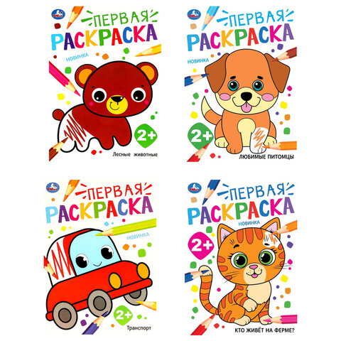 Книжка-раскраска с цветным контуром, "ПЕРВАЯ РАСКРАСКА", ассорти, 210х290 мм, 16 страниц, УМКА