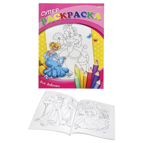 Книжка-раскраска СУПЕР РАСКРАСКА, АССОРТИ, 200х280 мм, 80 страниц, ПП