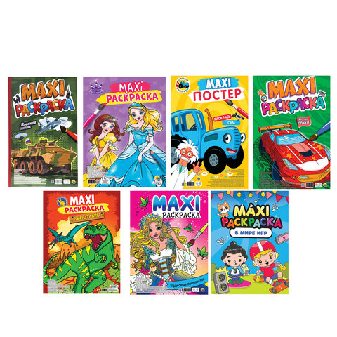 Раскраска "МАКСИ-РАСКРАСКА", АССОРТИ, 340х485 мм, 20 стр., внутренний блок 100 г/м2, ПП