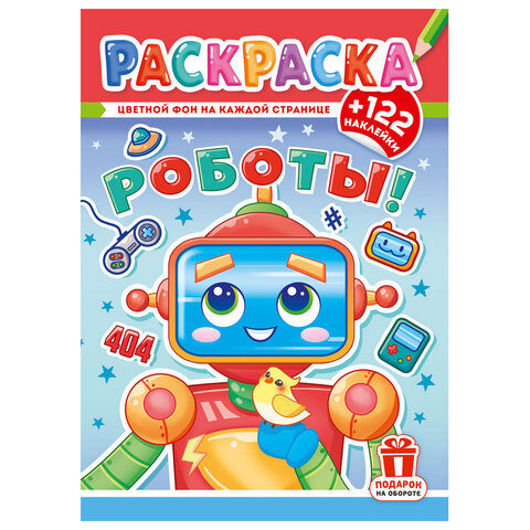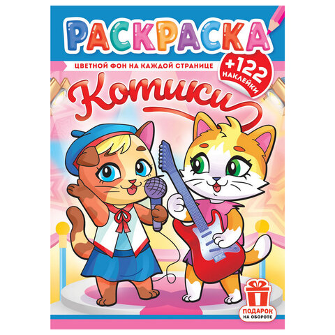 Откройте для ребёнка новый уровень творчества с этой необычной раскраской, где каждая страница уже имеет красочный фон, а в подарок идёт целых 122 ярких наклейки!