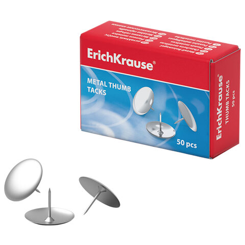 Кнопки канцелярские ERICH KRAUSE металлические никелированные, 50 штук, в картонной коробке, 7851