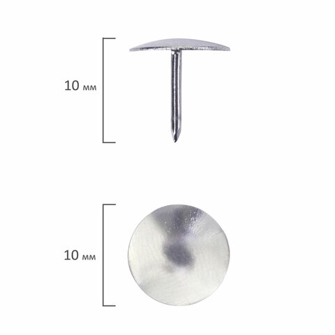 Кнопки канцелярские STAFF "Manager", металлические, никелированные, 10 мм, 50 шт., в картонной коробке, 225286