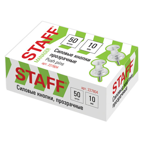 Силовые кнопки-гвоздики прозрачные STAFF 50 штук, в картонной коробке, 227804